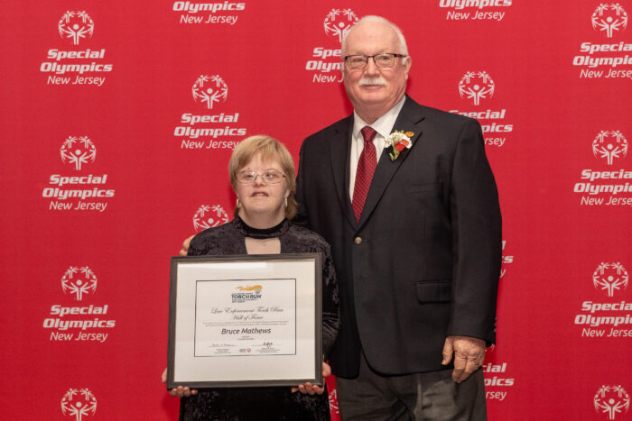 Bruce Mathews is the 2024 Law Enforcement Torch Run Hall of Fame inductee. This Hall of Fame recognizes individuals who have demonstrated a superior contribution to the Law Enforcement Toch Run for Special Olympics New Jersey. The award was presented by Kevin Burke, Director of Law Enforcement Torch Run.
