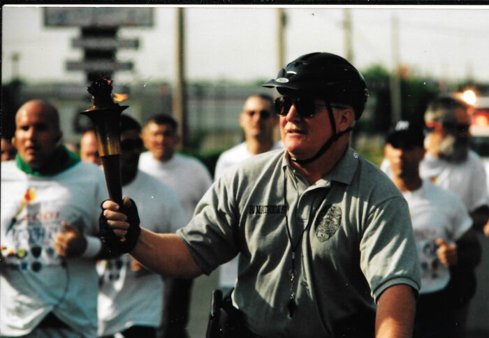 His dedication to the Law Enforcement Torch Run is unparalleled. In 2003, he was a Final Leg Runner from Athens to Ireland and was inducted into the International Law Enforcement Torch Run Hall of Fame. That same year, his department was proudly featured on the back of the Annual Torch Run t-shirt in position #8.