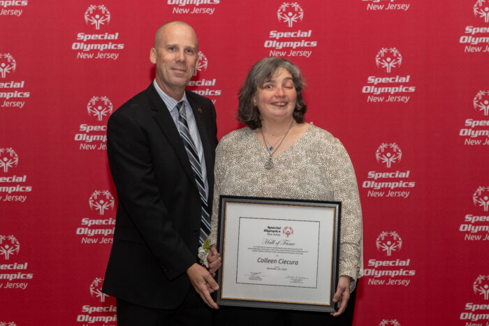 The Special Olympics Hall of Fame recognizes individuals with at least 10 years of involvement with Special Olympics New Jersey, who have advanced the Special Olympics movement in one of the categories of sports and training, fundraising, or public awareness. The award was presented by Regional Director East, Chris Tobin.