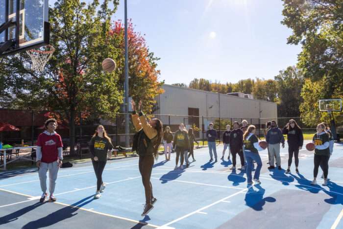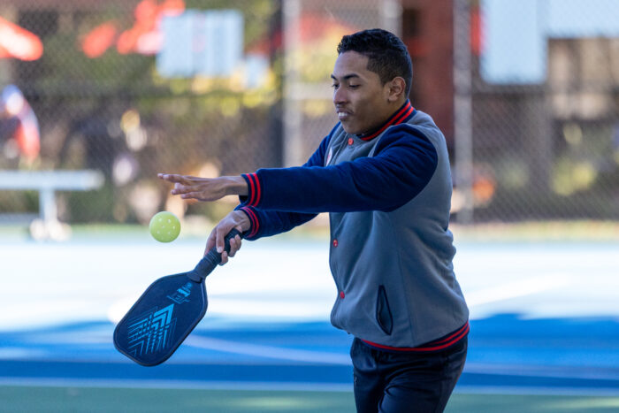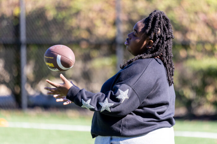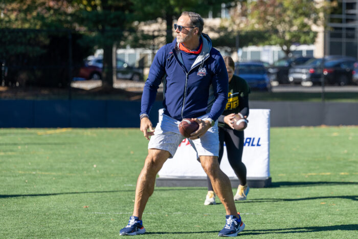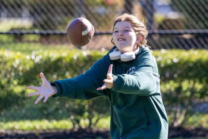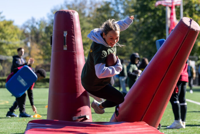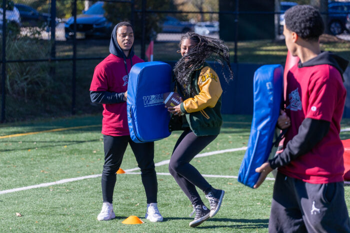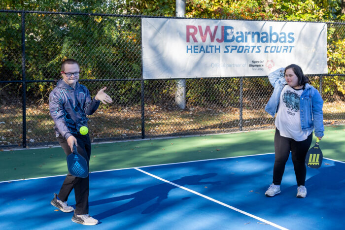 A series of throwing and running skills, led by Shaun O’Hara, kept SONJ flag football athletes and students from local schools literally on the run. Basketball and pickleball stations rounded out the activities, there was something for everybody! Students from Rider University, which is an Official Higher Education Partner of the New York Giants, helped out at all the stations.